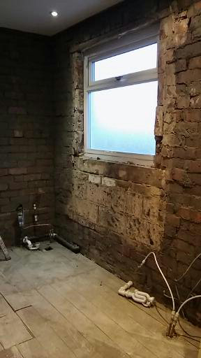The room was completely gutted, redundant pipework removed, pipework modified to accommodate the new fixtures, plasterboarded, walls and floor tiled, and all new fixtures installed in line with the brief received from Robert.